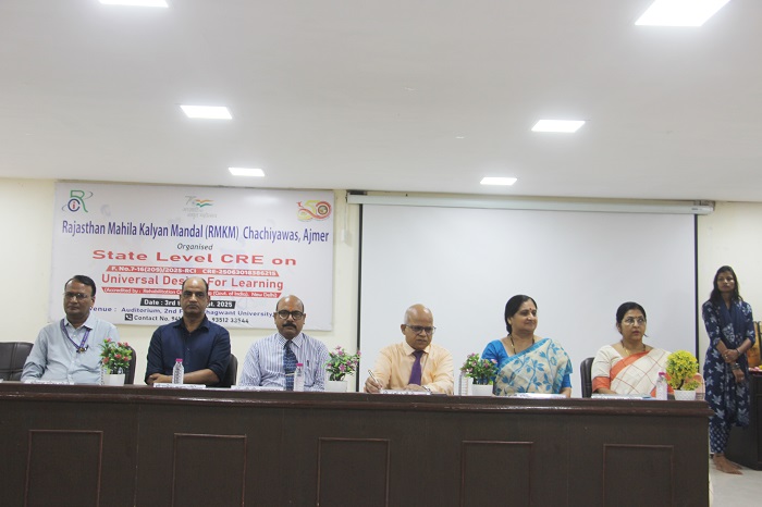 कौशिक दम्पत्ति ने सभी अतिथियों का स्वागत करते हुए सी.आर.ई. कार्यक्रम के महŸव के बारे में बताया वाइस चासंलर प्रो. वी. के. शर्मा ने कार्यक्रम की अध्यक्षता करते हुए सभी प्रतिभागियों को कार्यक्रम में अधिक से अधिक सीखने के लिए प्रेरित किया तथा मुख्य अतिथि के रूप में सम्बोधित करते हुए रमेश सोनी ने दिव्यांगजन के साथ शिक्षण कार्य करने वाले विशेष शिक्षकों को देवदूत की उपमा देते हुए संवेदनशीलता और सक्रीयता के साथ कार्य करने के लिए सतत् पुनर्वास शिक्षा जैसे कार्यक्रम को बहुत ही ज्यादा आवश्यक एवं उपयोगी बताते हुए संस्था को इस तरह के कार्यक्रम नियमित आयोजित करने के लिए बताया। प्रशिक्षण के दौरान निदेशक राकेश कुमार कौशिक ने सीखने के विवधि प्रकारों के बारे में समझाया। डाॅ. भगवान सहाय शर्मा एवं ईश्वर शर्मा के द्वारा भारतीय पुनर्वास परिषद्, दिव्यांगजन अधिकार अधिनियम 2016 तथा इसके मुख्य प्रावधानों एवं 21 प्रकार की विकलांगताओं के बारे में जानकारी दी। रिसोर्स पर्सन शुभा चन्द्रशेखर ने अपने सत्र में यूनिवर्सल डिजाइन फाॅर लर्निंग सिद्वान्त के विभिन्न पहलुओं एवं विशेष शिक्षको के लिए इसके महत्व एवं उपयोगिता के बारे में विस्तार से जानकारी दी।