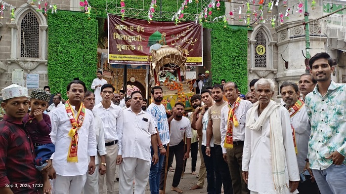 अजमेर 03 सितम्बर 2025 – सर्व श्री रैगरान पंचायत चारो बारी अजमेर द्वारा हर वर्ष के भांति इस वर्ष भी आज बुधवार को रैगर समाज द्वारा श्री कृष्ण भगवान की रेवाड़ी शोभा यात्रा धूमधाम से निकाली गयी जिसमें सैकड़ो की संख्या में महिलाओं, बच्चो व समाज बन्धुओं ने बढ़-चढ़ के हिस्सा लिया।