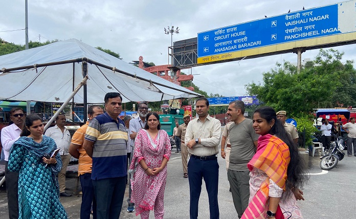 अजमेर, 7 सितम्बर। जिला कलक्टर श्री लोकबंधु ने रविवार को अधिकारियों के साथ शहर के विभिन्न क्षेत्रों का दौरा कर पिछले दिनों से जारी वर्षा के चलते हुए जल भराव एवं निकासी की व्यवस्थाओं का मौके पर जाकर जायजा लिया। उन्होंने पुलिस अधीक्षक वंदिता राणा, अजमेर विकास प्राधिकरण आयुक्त श्रीमती नित्या के, नगर निगम आयुक्त श्री देशलदान सहित अन्य अधिकारियों के साथ निरीक्षण कर आवश्यक निर्देश दिए।