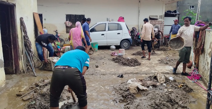 उन्होंने बताया कि चौथे दिन 7 सितम्बर को प्रातः 6 बजे से पुनः निगम के स्वास्थ्य अधिकारी मय स्वास्थ्य निरीक्षक, जमादार, लगभग 90 सफाई कर्मचारियों के साथ-साथ तकनीकी शाखा के कनिष्ठ अभियन्ता, सहायक अभियन्ता एवं अधीषाशी अभियन्ता मौके पर पहुंचें एवं राहत कार्य प्रारम्भ किया गया। जिसमें मकानों के आस-पास स्थित प्लॉटों में भरे पानी की निकासी सुनिश्चित की गई। इसके साथ-साथ अग्निशमन विभाग के चार वाहन, दो जेटिंग मशीन, पांच जेसीबी मशीन, पांच डम्पर, पांच ट्रेक्टर प्रातः काल से सांय काल तक कार्य पर लगे रहे।