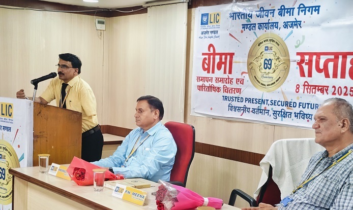 भारतीय जीवन बीमा निगम का बीमा सप्ताह दिनांक 01 सितंबर से 8 सितंबर तक बड़ी ही धूमधाम और हर्षौल्लास के साथ मनाया गया। बीमा सप्ताह के तहत कार्मिकों के लिए प्रतिदिन योग शिविर, वृक्षारोपण ,स्वास्थ्य जांच शिविर, निबंध एवं स्लोगन प्रतियोगिता,महिला कार्मिकों के लिए रंगोली प्रतियोगिता, ग्राहक संगोष्ठी ,सेवानिवृत कार्मिकों का सम्मान जैसे अनेक कार्यक्रम आयोजित किये गये। वरिष्ठ मंडल प्रबंधक श्री पी.एन. मीना ने बताया की निगम अपने पॉलिसीधारकों के विश्वास पर सदैव ही खरा उतरा है तथा आगे भी निगम अपनी सेवाओं में समय की मांग के अनुसार डिजिटल परिवर्तन की प्रक्रिया की और अग्रसर है इसी कड़ी में निगम ने हाल ही में एल.आई.सी. कस्टमर ऐप शुरू किया है जिससे ग्राहकों को घर बैठे सभी सेवाएं मिल सकेगी , केंद्रीय सरकार ने एल.आई.सी. प्रीमियम पर जी.एस.टी. हटाने का जो निर्णय लिया है उससे ग्राहकों को तो फायदा होगा ही साथ ही साथ निगम अपने लक्ष्य ‘सभी के लिए बीमा’ को भी पाने में सफल होगा।