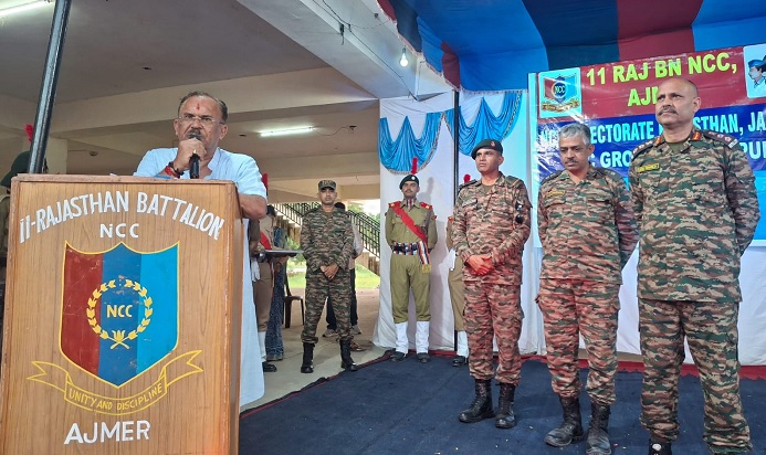 कायड़ विश्राम स्थली में आयोजित एनसीसी कैडेट्स वार्षिक प्रशिक्षण कार्यक्रम के समापन पर एनसीसी कैडेट्स को संबोधित करते हुए विधानसभा अध्यक्ष श्री वासुदेव देवनानी ने कहा कि राष्ट्र निर्माण में एनसीसी कैडेट्स के महत्वपूर्ण भूमिका है। देश का सबसे बड़ा युवा संगठन होने के नाते एनसीसी कैडेट्स पर ज्यादा जिम्मेदारी है। वह स्वदेशी को स्वीकार करें। देश में रोजगार के नए अवसर पैदा करने की दिशा में रोजगार मांगने की बजाय रोजगार देने की सोच को बढ़ावा दें, राष्ट्र की सेवा करें। इससे 2047 तक भारत विश्व की सबसे बड़ी आर्थिक शक्ति बने।