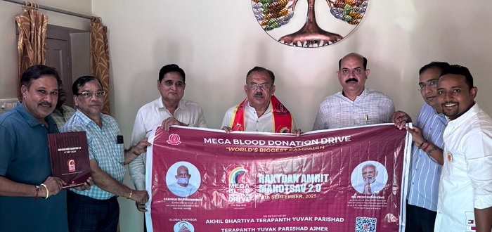 अखिल भारतीय तेरापंथ युवक परिषद के तत्वाधान में तेरापंथ युवक परिषद की सम्पूर्ण भारत में 358 शाखा द्वारा 17 सितंबर को मेगा ब्लड डोनेशन ड्राइव का आयोजन किया जा रहा है।