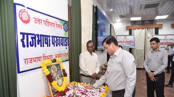 दिनांक 17.09.2025 को अजमेर मंडल राजभाषा पखवाड़ा-2025 का शुभारम्भ मंडल कार्यालय के सभा कक्ष में मंडल रेल प्रबंधक श्री राजू भूतड़ा की अध्यक्षता में माँ सरस्वती के माल्यार्पण एवं दीप प्रज्ज्वलन के साथ किया गया। राजभाषा पखवाड़ा के दौरान दिनांक 17.09.25 से 26.09.2025 तक अधिकारियों व कर्मचारियों के लिए विभिन्न प्रतियोगिताओं का आयोजन किया जाएगा।