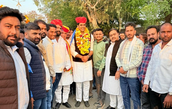 आज दिनांक 24 नवम्बर – अजमेर देहात जिला कांग्रेस कमेटी के नवनियुक्त अध्यक्ष व किषनगढ़ विधायक विकास चौधरी के अजमेर आगमन पर एन.एस.यू.आई जिलाध्यक्ष अभिषेक सेमसन के नेतृत्व मे माला व साफा पहनाकर भव्य व जोरदार स्वागत कर बधाई प्रेषित की।